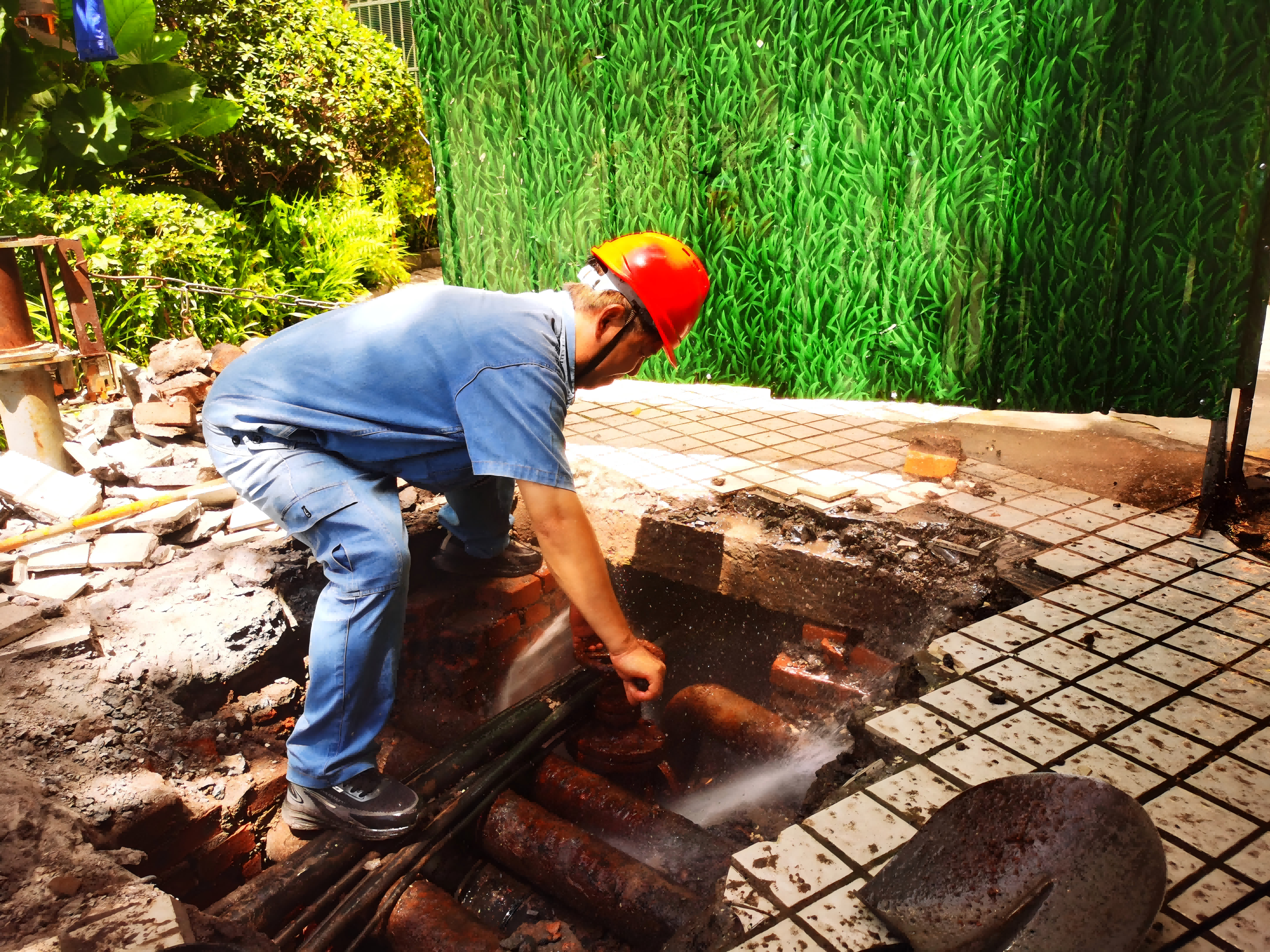 在這支水務藍隊伍里有這樣一位衛(wèi)士——管道維修工張國彪,他頭頂烈日,腳踏熱土,始終堅守城區(qū)管道巡檢第一線。此刻的他正蹲在破裂水管旁,藍色工裝早已被汗水浸透,緊緊貼在背上。他抹了把臉,任憑汗珠混著泥水滑落,手里的扳手卻一刻沒停是他今天處理的第個搶修點。