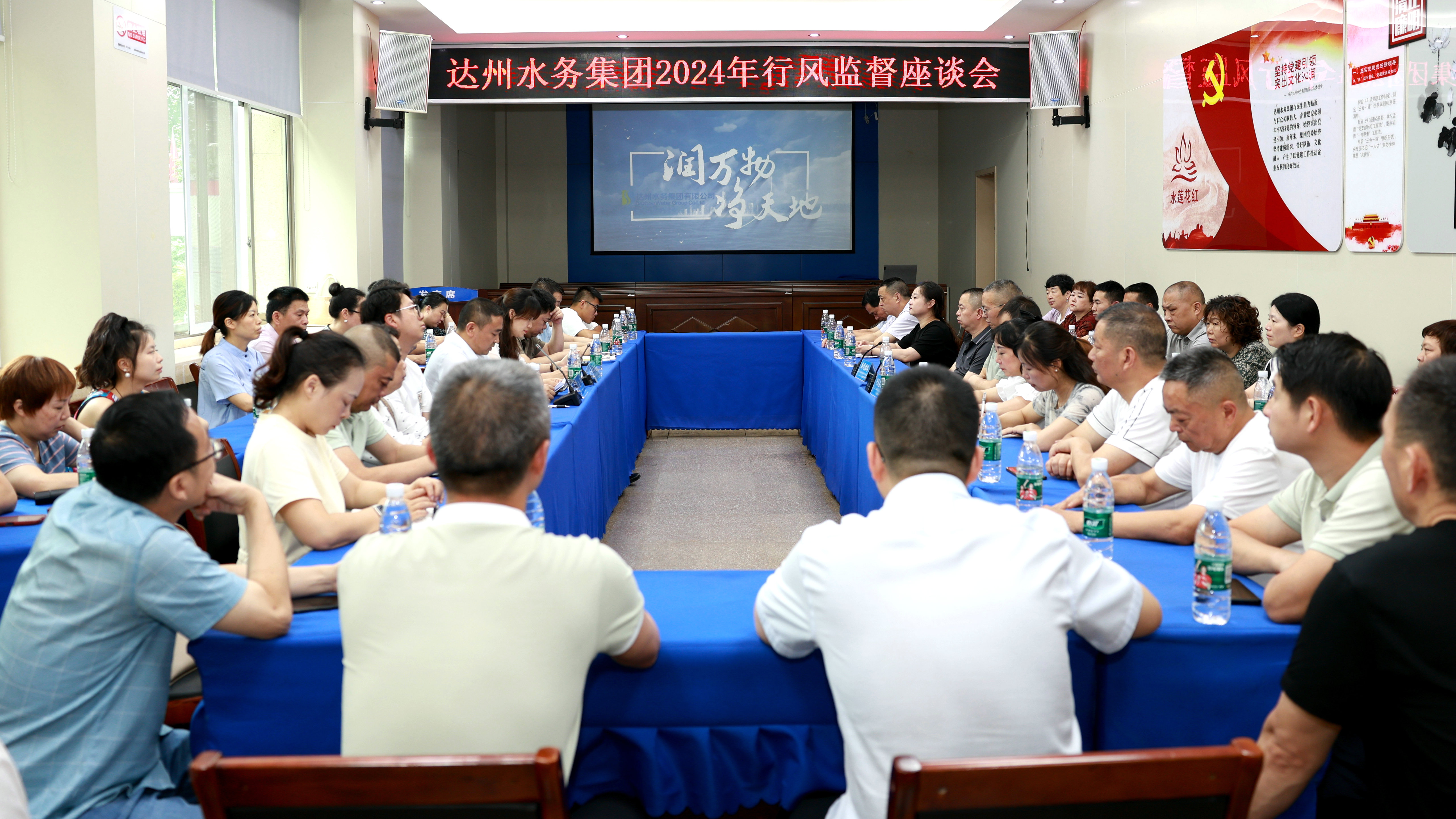 為進(jìn)一步加強(qiáng)行風(fēng)建設(shè),改進(jìn)工作作風(fēng),提升供水服務(wù)質(zhì)量和水平。6月13日,集團(tuán)公司召開(kāi)2024年行風(fēng)監(jiān)督座談會(huì),行風(fēng)監(jiān)督員、新聞媒體代表、網(wǎng)民代表,集團(tuán)黨委委員、紀(jì)委書(shū)記王宇,總工程師李莉君,各經(jīng)營(yíng)分公司負(fù)責(zé)人、相關(guān)部門負(fù)責(zé)人共計(jì)60余人參加座談會(huì)。會(huì)議由王宇主持。
