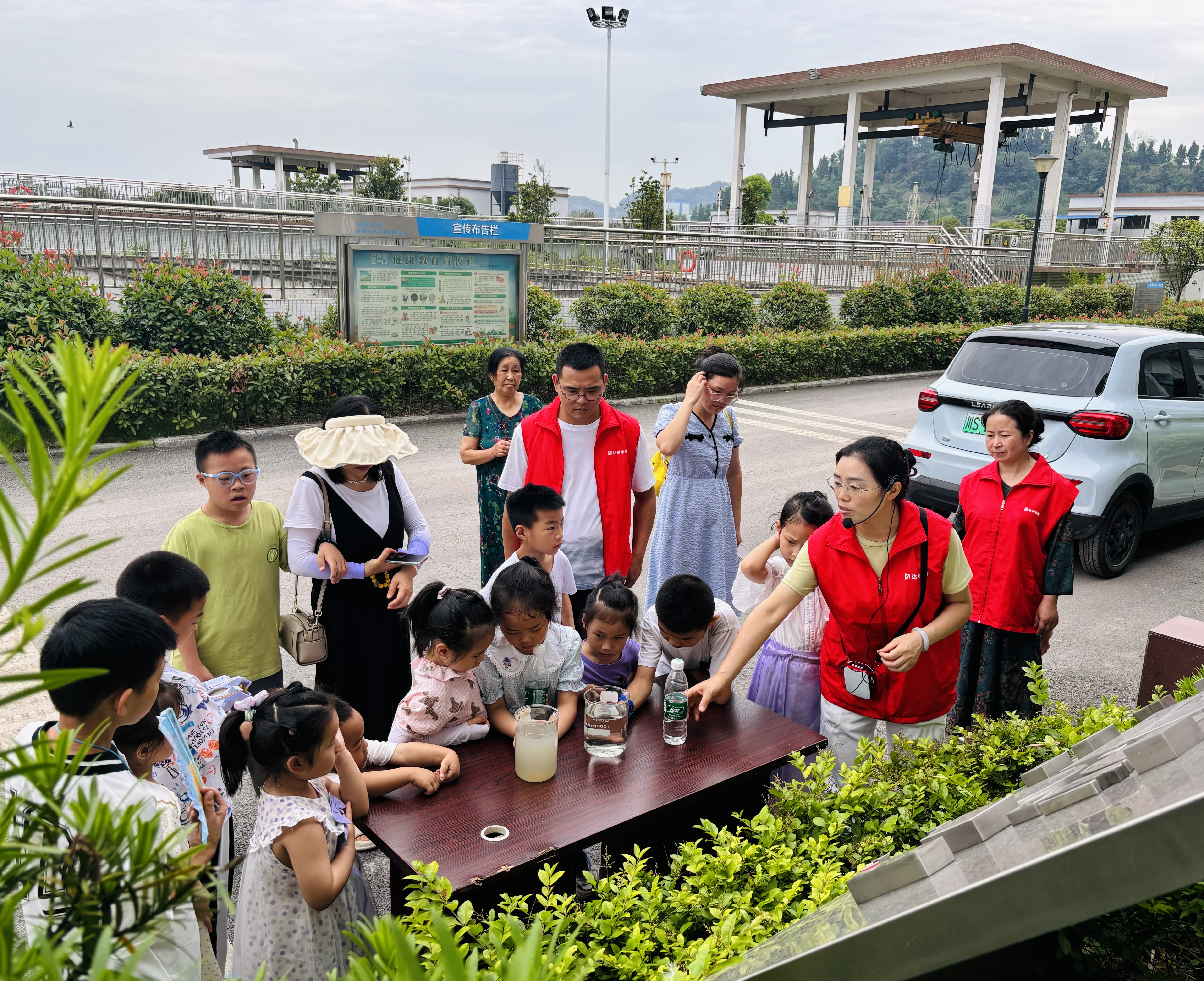 孩子們在家長的陪同下觀看了污水處理流程動畫演示片,并在講解員帶領(lǐng)下開啟了參觀之旅,先后參觀了污水入口、粗格柵、化池、二沉池、消毒池、出水口等,用深入淺出的比喻給孩子們講解污水處理的每一道工序,增強他們“節(jié)約用水,保護環(huán)境”的意識。